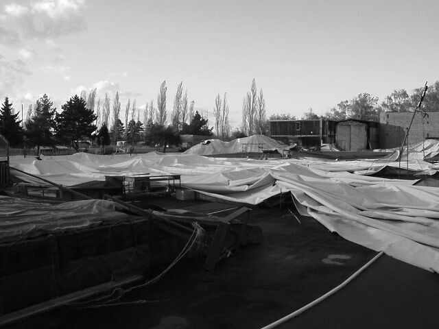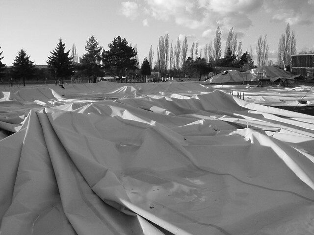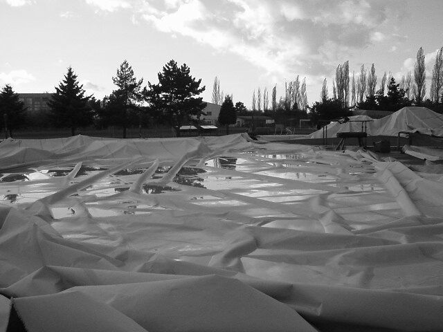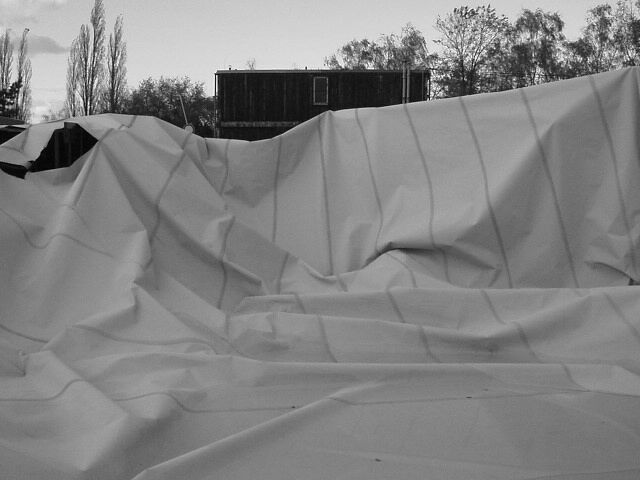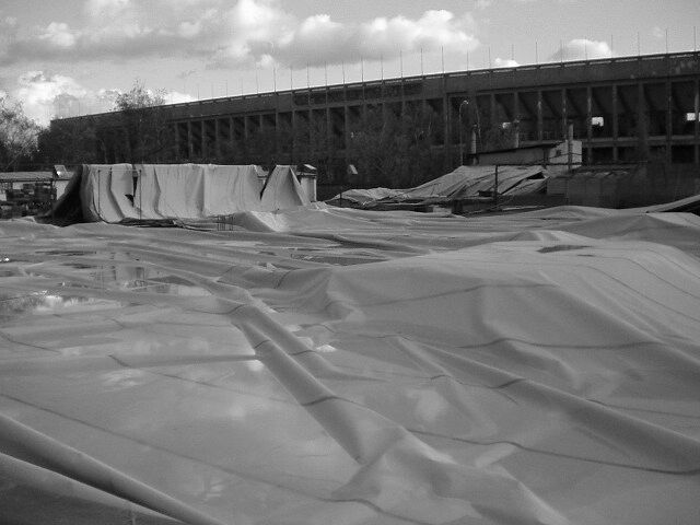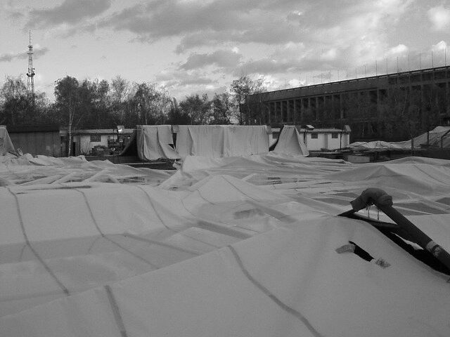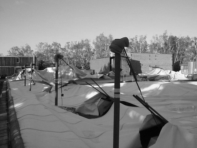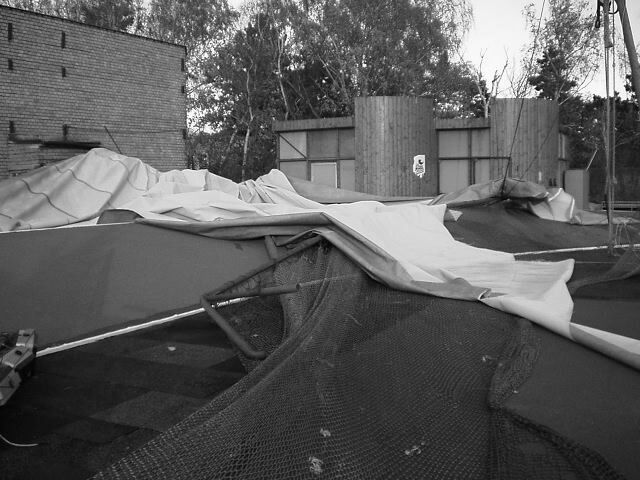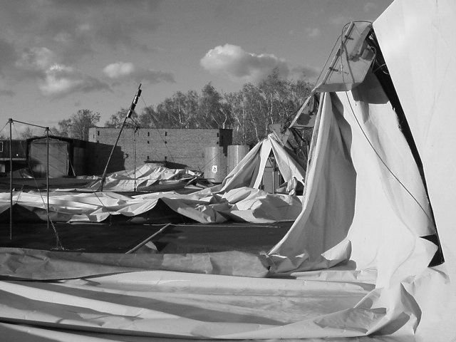 Strahov, 28.10.2002, vichřicí stržená nafukovací atletická hal